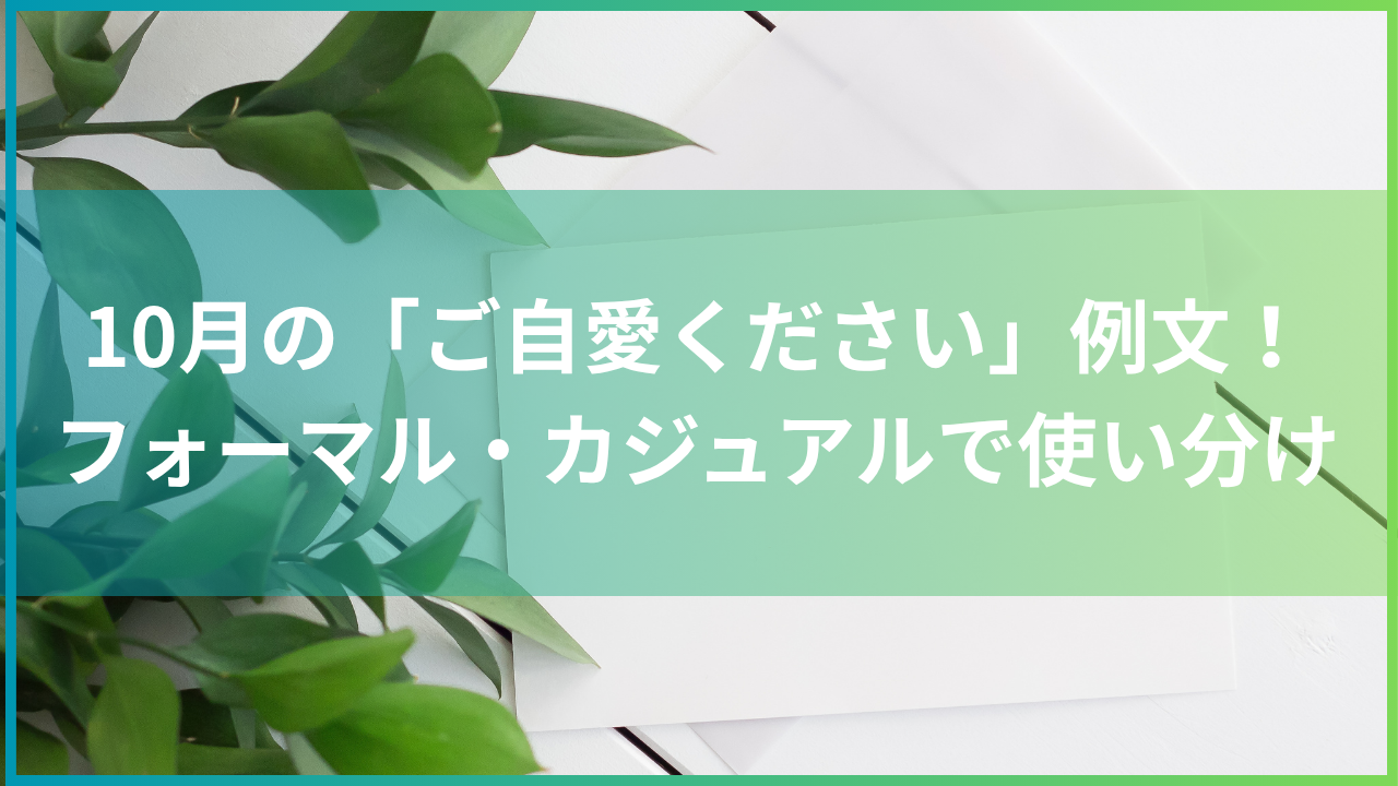 本記事では、10月にふさわしい「ご自愛ください」の使い方や例文を、フォーマルからカジュアルまで幅広くご紹介します。