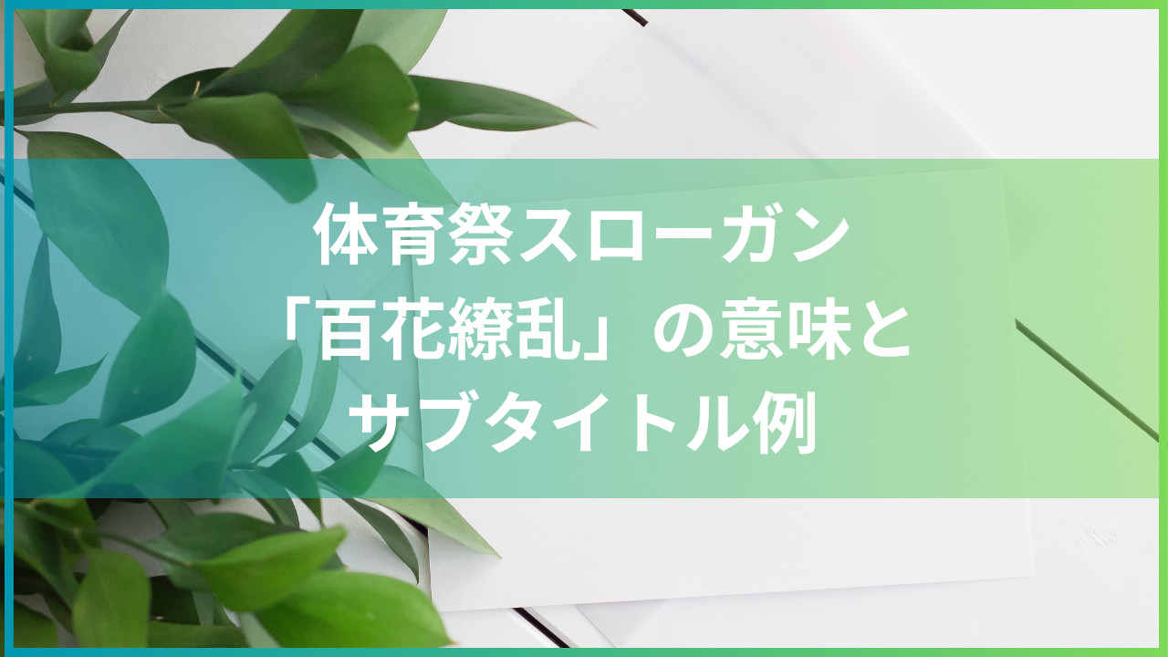 ぜひ、世界に一つだけの「百花繚乱」スローガンで、最高の体育祭を作り上げてくださいね。